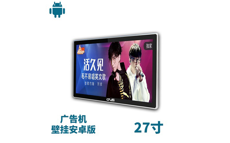 CTVS中視智能商顯科技有限公司專注于中高端液晶廣告機的研制與生產銷售,從產品外觀上可以區分為立式跟壁掛式,從操控來區分可以分為單機版跟安卓版,此款產品為安卓版壁掛式,搭載了安卓操控系統,顯示尺寸為27寸,支持高清視頻及圖文播放與遠程數據傳輸,廠家直銷,價格優勢顯著.